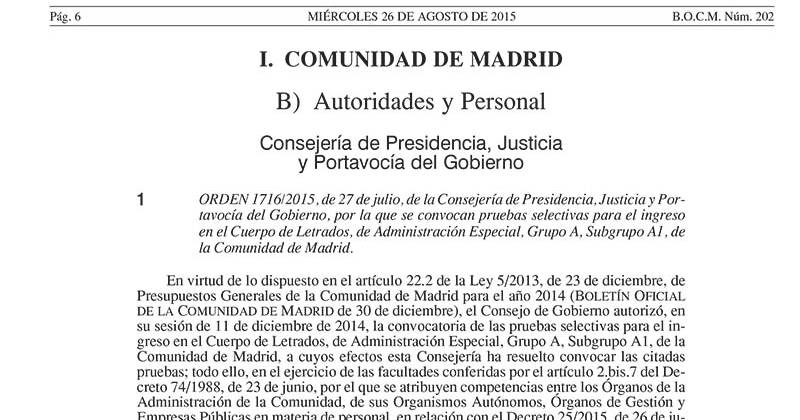 ORDEN 3/2016, de 25 de febrero, de la Conselleria de Justicia, Administración Pública, Reformas Democráticas y Libertades Públicas, por la que se convocan pruebas selectivas de acceso al cuerpo de abogados de la Generalitat, A1-02, por el sistema de oposición, Convocatoria4/14, correspondientes a la oferta de empleo público de 2014 para el personal de la Administración de la Generalitat.